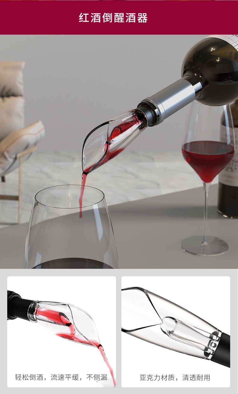 1. 4件酒具搭配组合,一次满足开酒、倒酒、醒酒和存酒所需