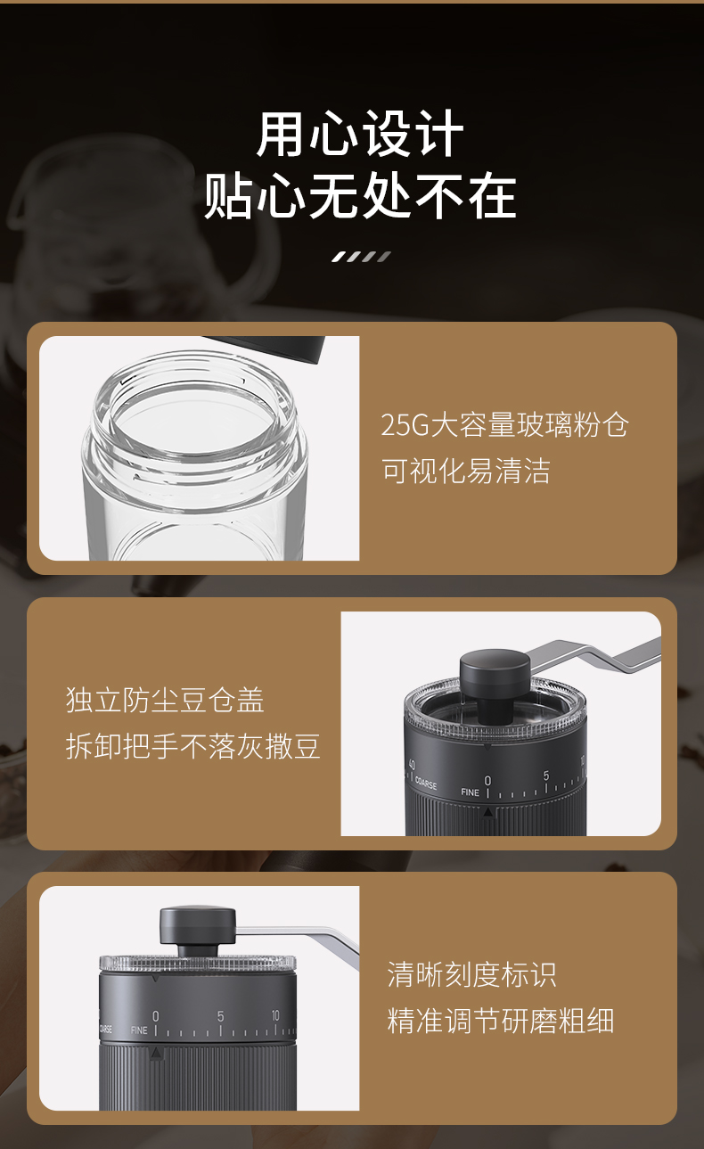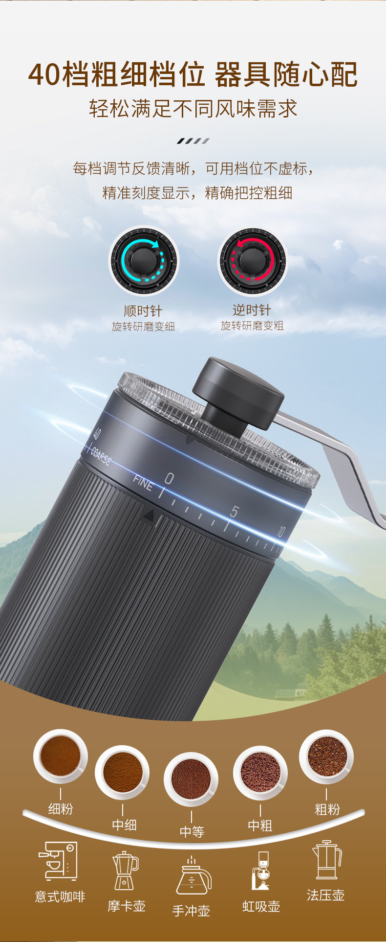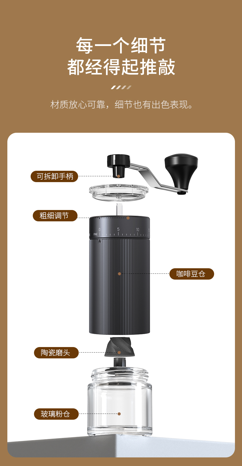 2. 粗细可调节,适合各类冲煮方式
