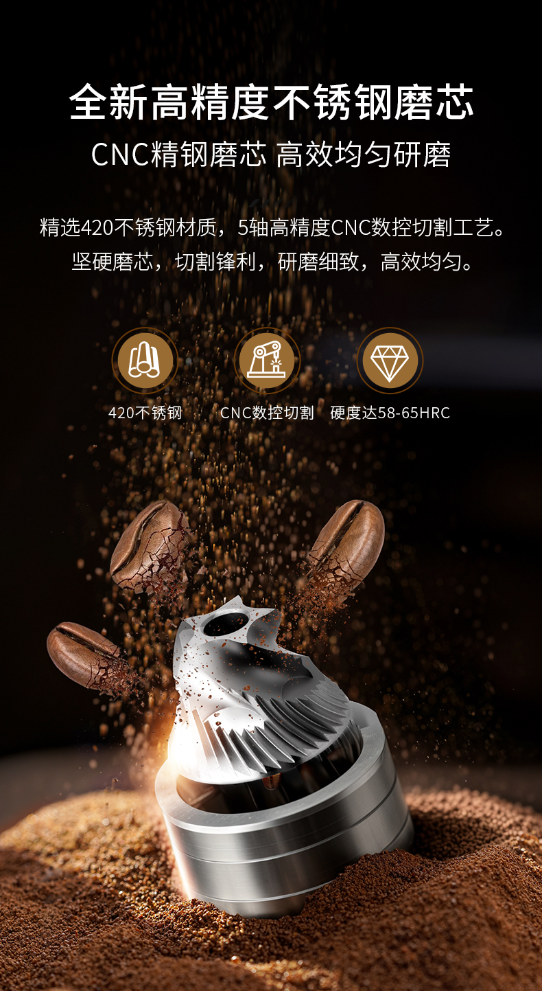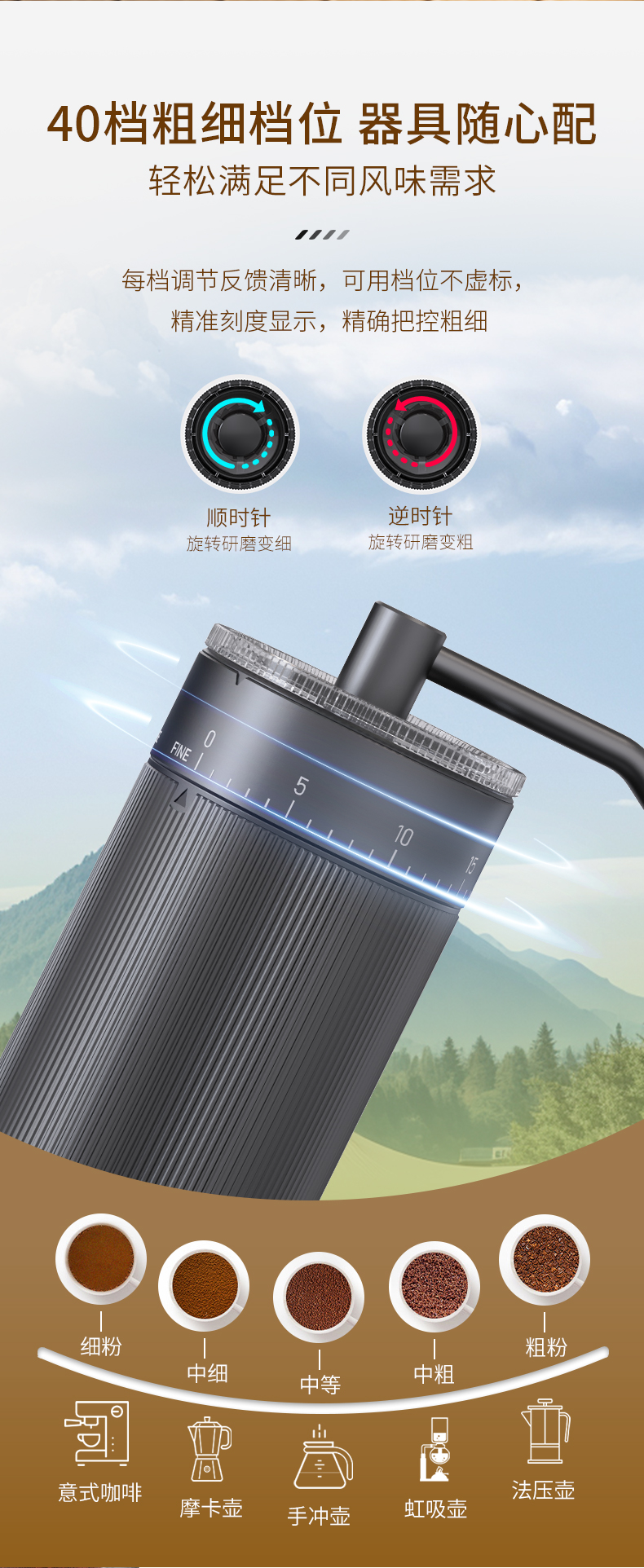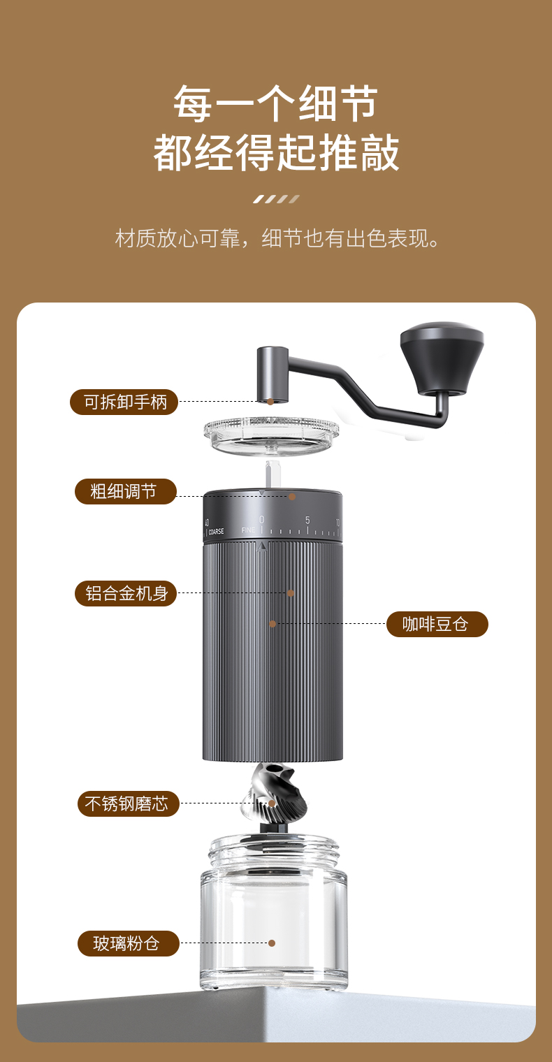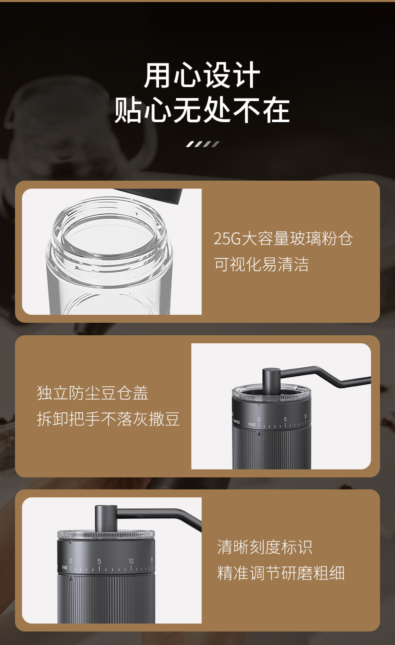 2. 点式档位粗细调节,适合各类冲煮方式